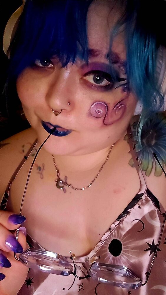 Sometimes it's too hot to have a top on...#glasses #makeup #bigtits #tattoos #piercings